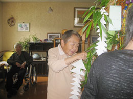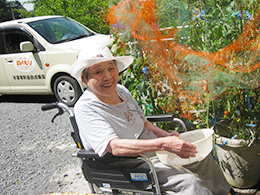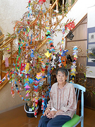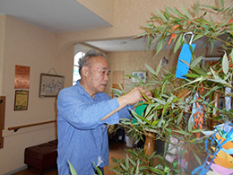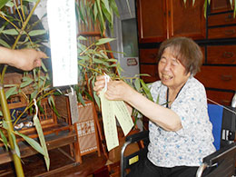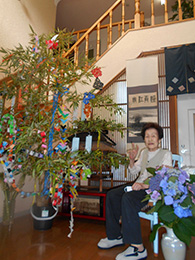 皆様で飾り付けをした七夕飾りの前で記念撮影。