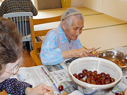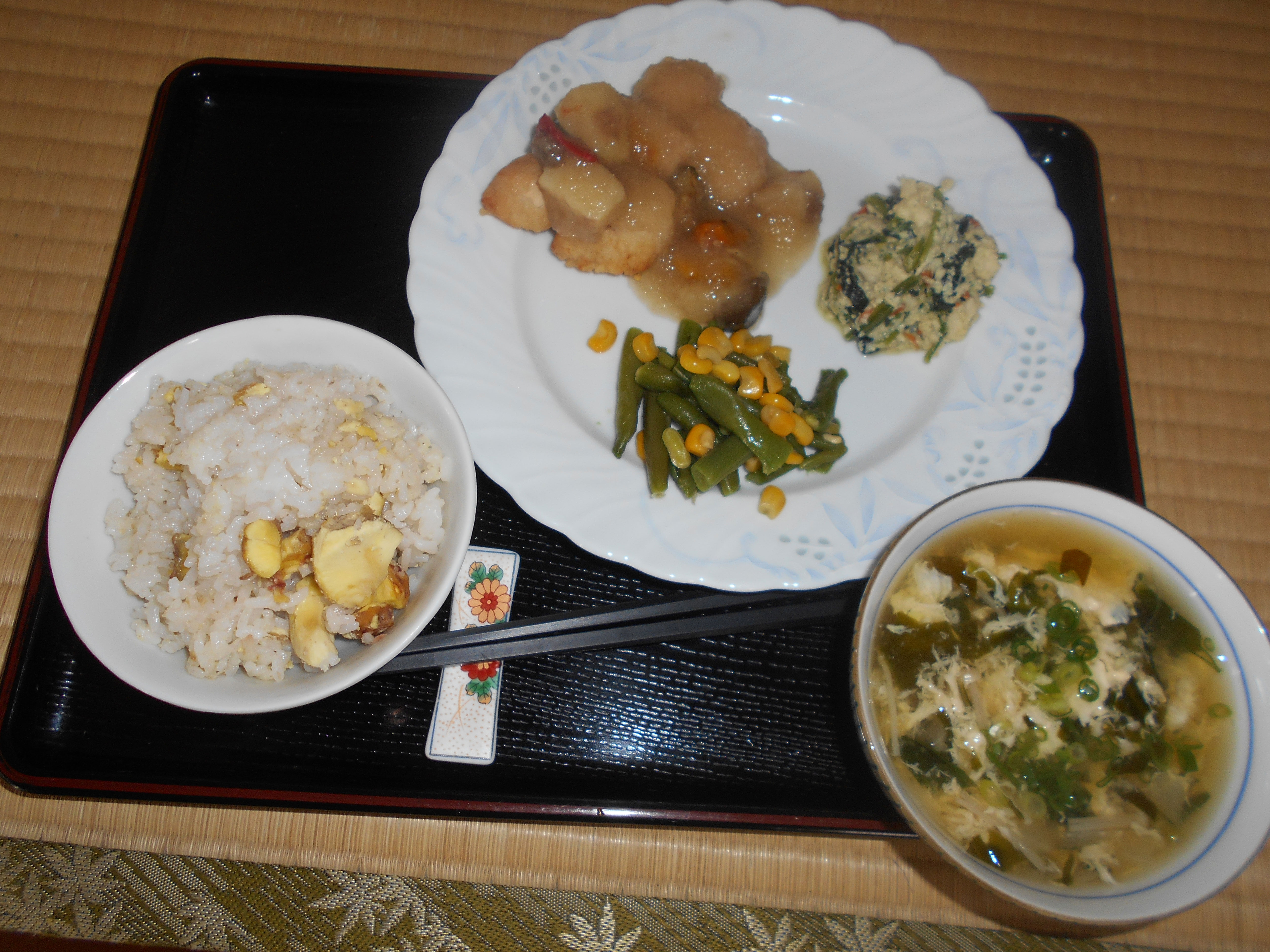 秋の味覚、栗ご飯を昼食で食べました。皆様大変喜ばれました。