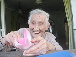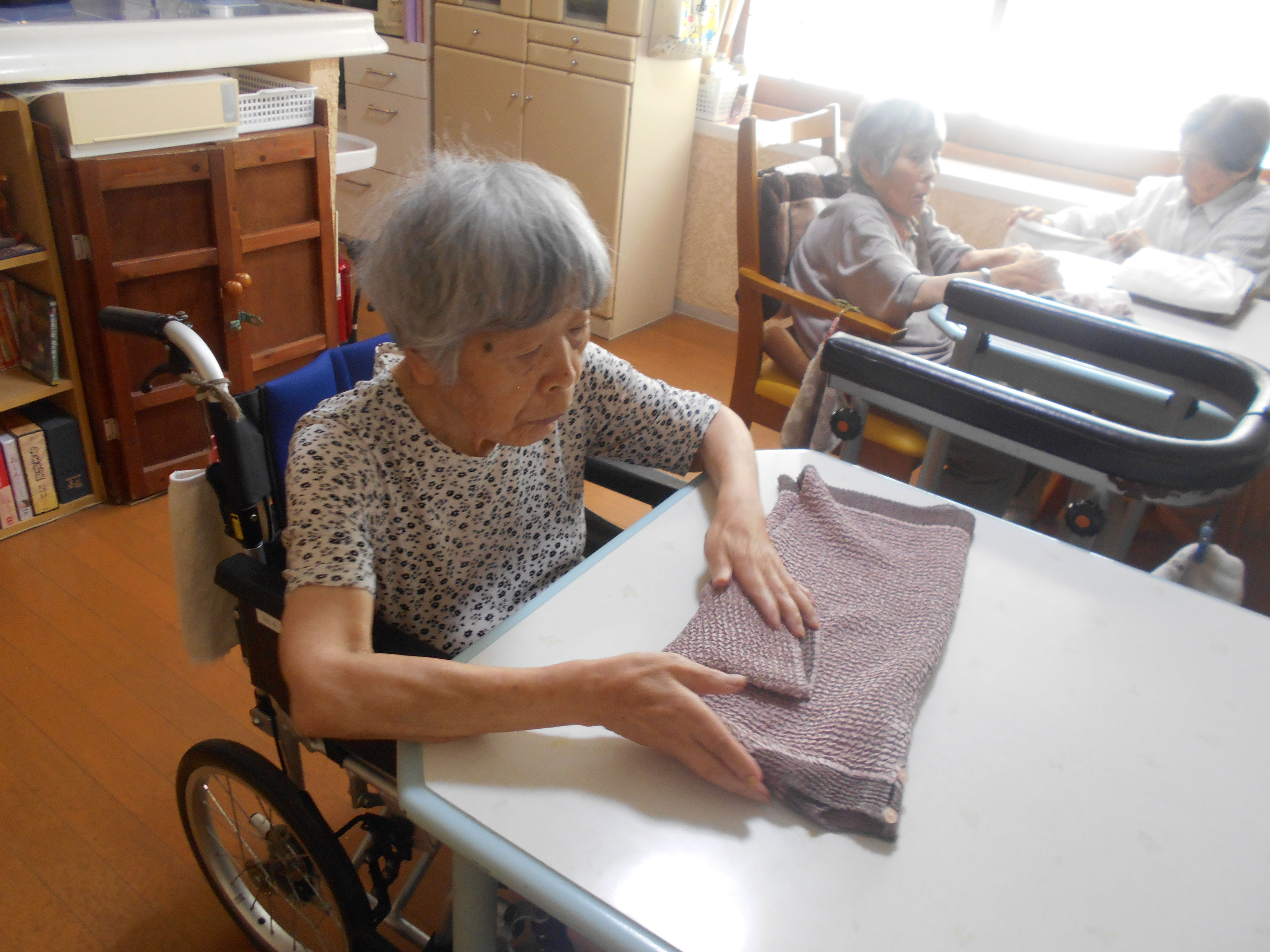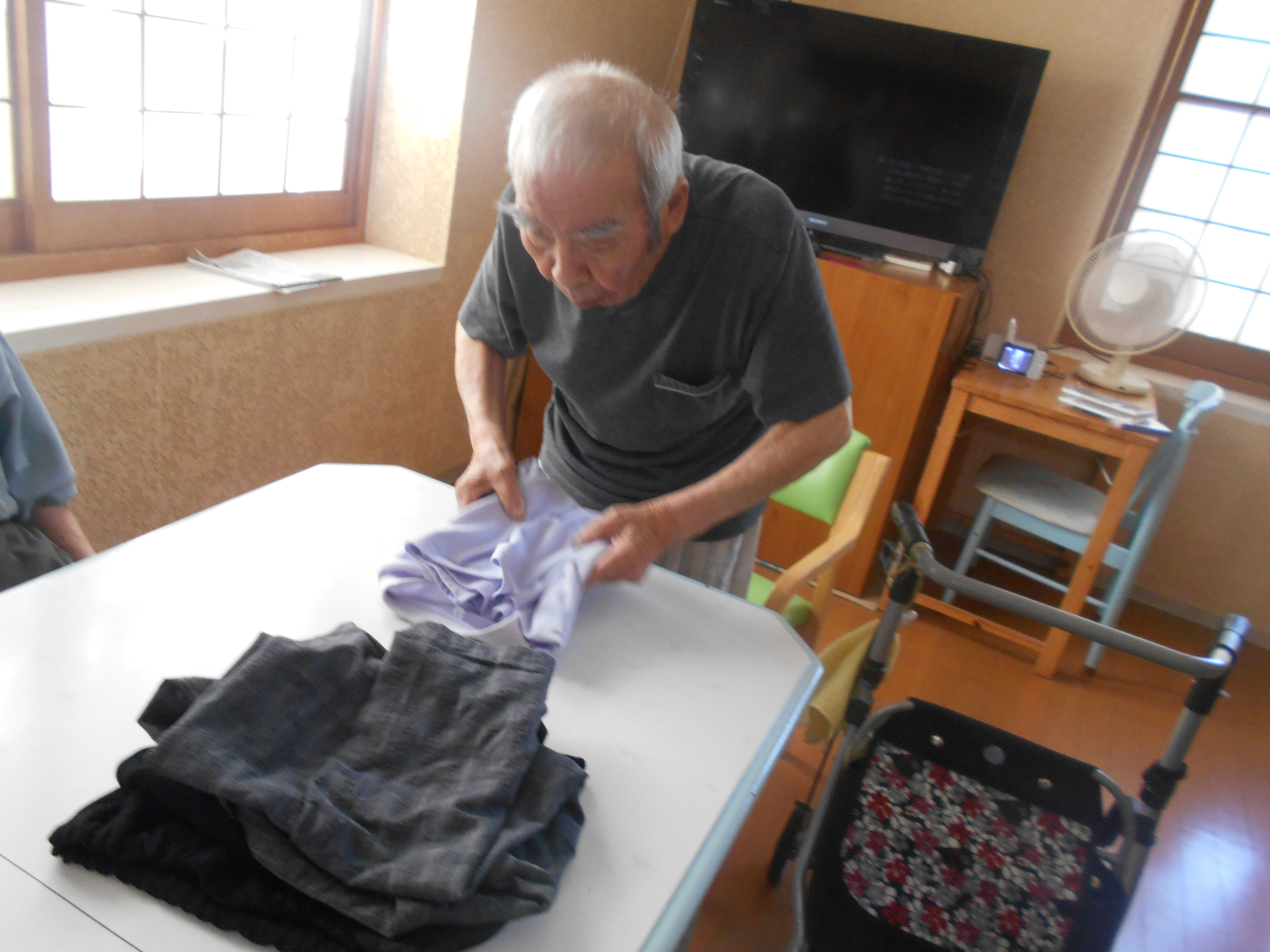 「洗濯物干しや畳みは任せてね。」いつも皆さんで畳んでくださいます。