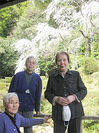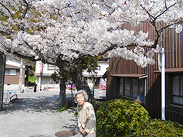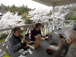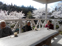 ぬくもりの庭。近くの河川敷へドライブ。満開の桜に皆様喜ばれていました。