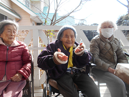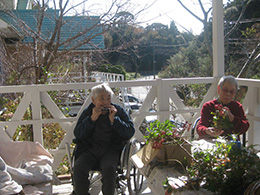 天気が良く暖かい日はバルコニーや玄関先に出て外気浴を行います