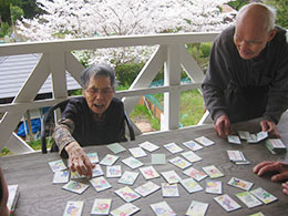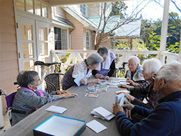少しずつ涼しくなってきたので、テラスでお茶のあと興じます。かなり真剣。