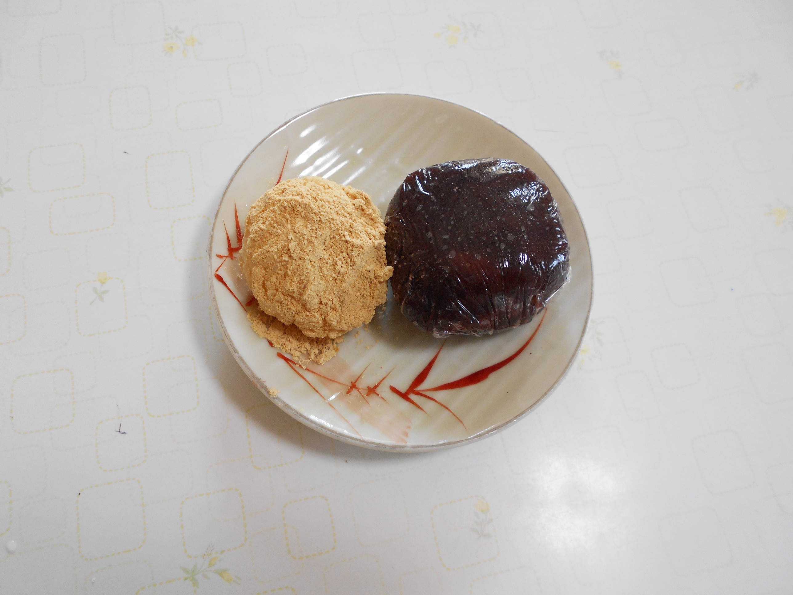 お彼岸のおはぎを作り、あんこときな粉の2種類を作ります。