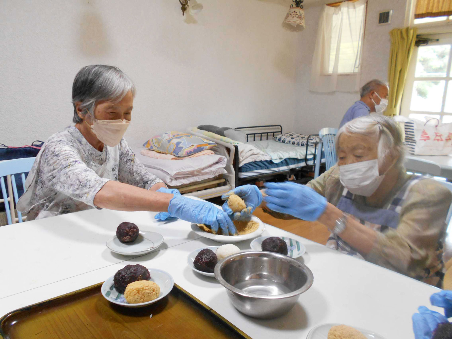 グループホーム、小規模多機能ホーム共にお彼岸のおはぎ作りを行い、昼食で美味しく頂きました。