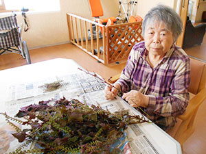 ぬくもりで育った赤しその実をご利用者様に取って頂き佃煮にしました。