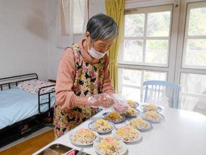 利用者様のお誕生日のお祝いで、ちらし寿司を作りました。