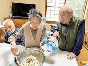 利用者様と職員で一緒に作り、味見もして頂きました。