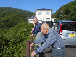 ご利用者のご親族の家の前で。後ろの皇帝ダリアが見事です。
