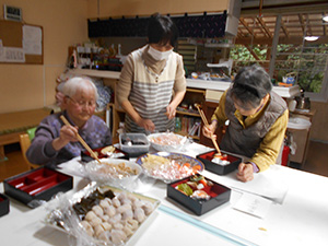 おせち料理にお雑煮、福笑いで大盛り上がり。