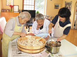 認知症の方が家庭的な雰囲気の中で、その人らしい日常生活ができるよう一人ひとりの個性を大切にし、おだやかで、ぬくもりのある共同生活をして頂けるよう支援させて頂いています。